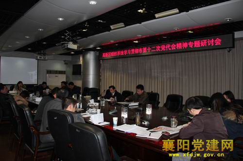 12月23日下午,高新区组织部召开了组织系统学习贯彻市第十二次党代会精神专题会议。会上首先传达了区党工委办公室《关于深入学习贯彻落实市第十二次党代会精神的通知》(襄高办发[2011]72号),进一步明确学习贯彻市第十二次党代会精神的重要意义、目标要求和学习方式。同时,全文学习了省委常委、市委书记范锐平同志在市第十二次党代会上做的《坚持科学发展、建设四个襄阳,为早日建成现代化区域中心城市而奋斗》主题报告,并进行专题研讨。