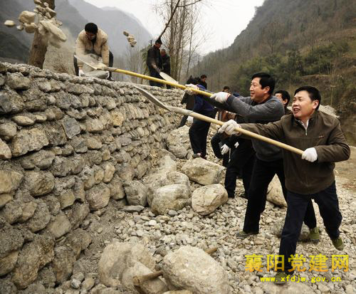 12月30日至31日,襄阳市人社局45名科级以上干部来到保康县城关镇刘家坪村,参加该局“三万”工作队组织修建的60余米的拦河坝义务劳动,共清除沙石200多立方,拦水坝修好后可为该村保护水田61亩、旱地100亩。人社干部还将3100斤大米分送到全村155户群众家中,并为5户特困党员群众送去1000元慰问金。
