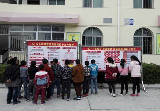 学生通过十九大精神宣传专栏了解十九大知识