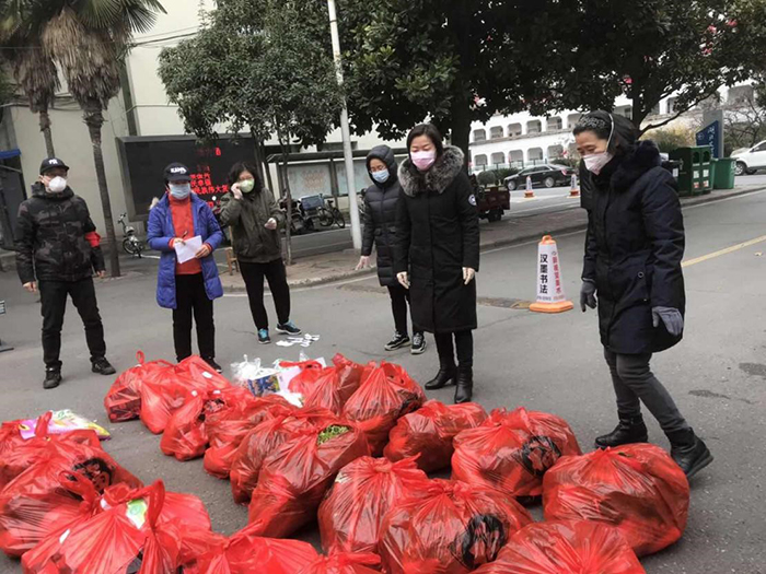 想方设法确保供应。校区实行封闭管理后,必须为校区居家隔离人员做好后勤保障,买菜、买药都由志愿者组织购买,分户派送。防控小组经过多方联系比对,确定了一家中等规模超市提供蔬菜及生活品。每周三次,双日下单,单日配送。一开始,订菜只能统一下单,张锋负责收集各户订菜信息,再收款统计,最后汇总发给超市,每次总是反复核对,避免遗漏。全市实行“网络菜篮子”,校区里一些老人既没有子女帮助下单自己又不会微信支付的,志愿者们就帮老人下单,并先垫付费用。校区老年人居多,行动不便,同时也为了减少感染风险,每周三次的蔬菜配送,志愿者们都做到配送入户,全力保障居家隔离人员生活需求。
