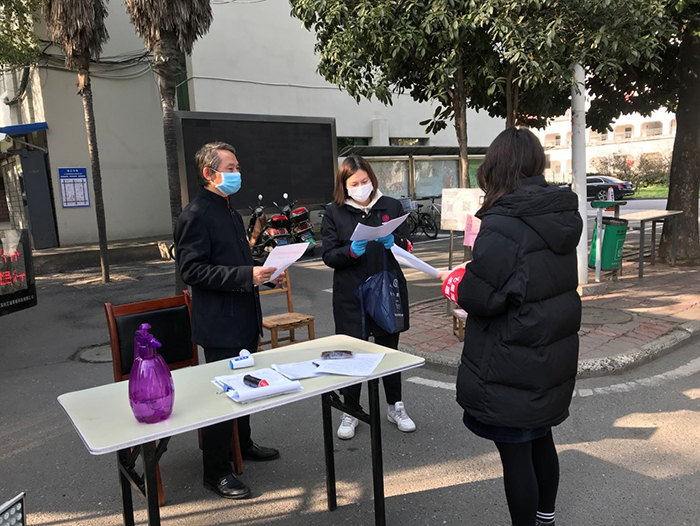 健康排查细织密网。中原路校区是个老旧校区,外来租住者多,老年人多,人员复杂,工作难度大。防控工作小组挑选精兵强将,组成每日入户排查队伍。针对校区人员复杂、老同志居多、患有精神性疾病和残疾人员难管的情况,防控小组实行了楼栋、单元包保制度。选择责任心强、富有奉献精神的志愿者作为校区各楼栋、单元责任人,承担每日健康打卡、入户排查任务。通过微信群、电话、入户排查等方式对校区95户、241居民健康状况进行跟踪,每天中午12点前将情况报给入户排查负责人。经过复核汇总后,报给社区网络管理员,为社区决策提供基础数据。