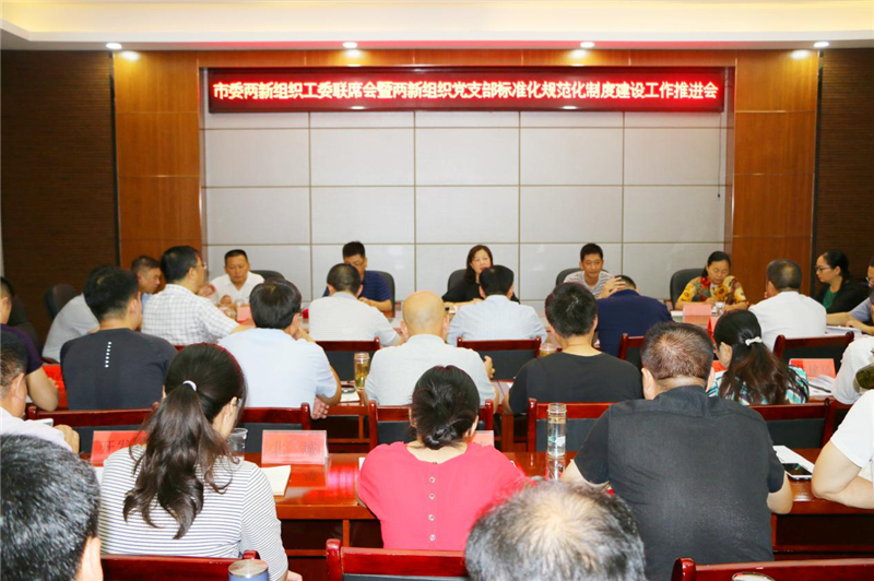 8月21日,枣阳市召开市委两新工委联席会暨两新组织党支部标准化规范化制度建设试点工作推进会,市委两新工委书记、副书记,两新工委委员单位分管领导、经济项目拉练服务单位负责人、各镇(办、区)党委(工委)组织委员和选派的专职党务工作者等50余人参加了会议。