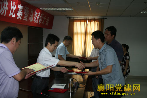 6名演讲者围绕中国共产党成立九十年以来的丰功伟绩、身边共产党员爱岗敬业、服务人民、无私奉献的先进事迹和组工干部“讲党性、重品行、作表率”体会,分别进行了声情并茂的演讲。演讲结束后,组织部对5名在“组工业务大比武”中胜出的组工干部和3名演讲比赛的优胜者进行了表彰奖励。