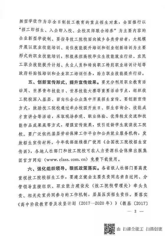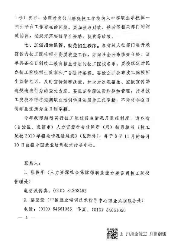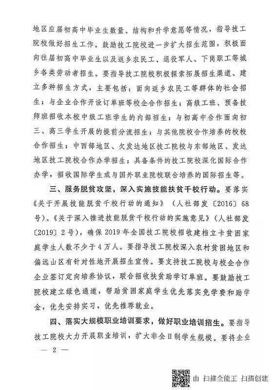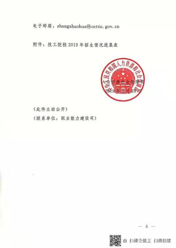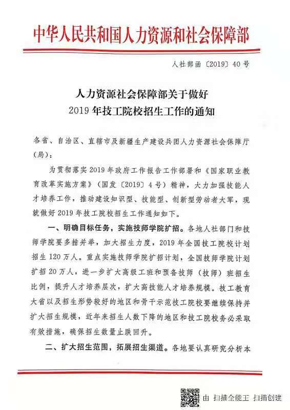 关于做好2019年技工院校招生工作的通知(人社部函﹝2019﹞40号)
