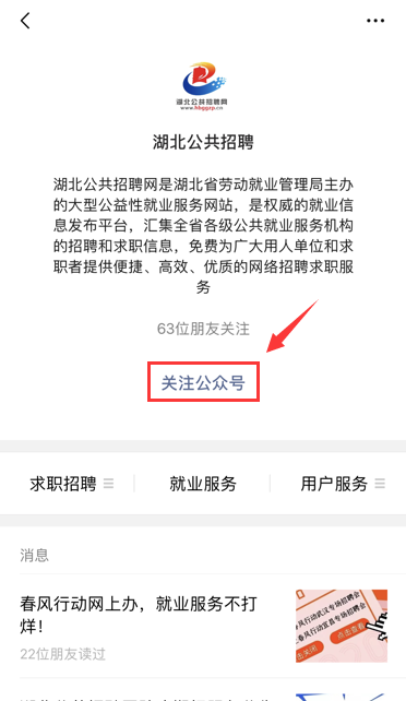 ①关注“湖北公共招聘”微信公众号。
