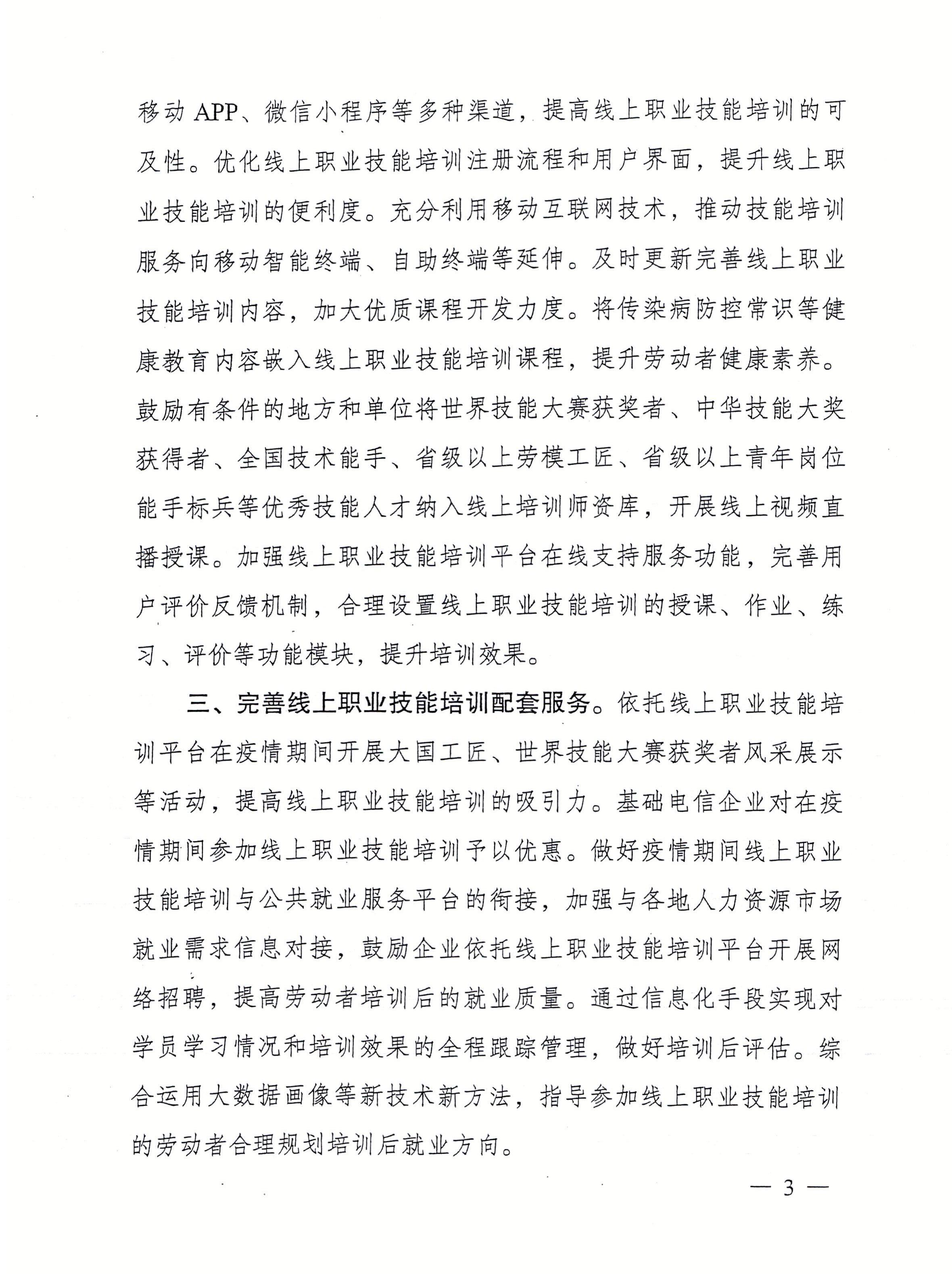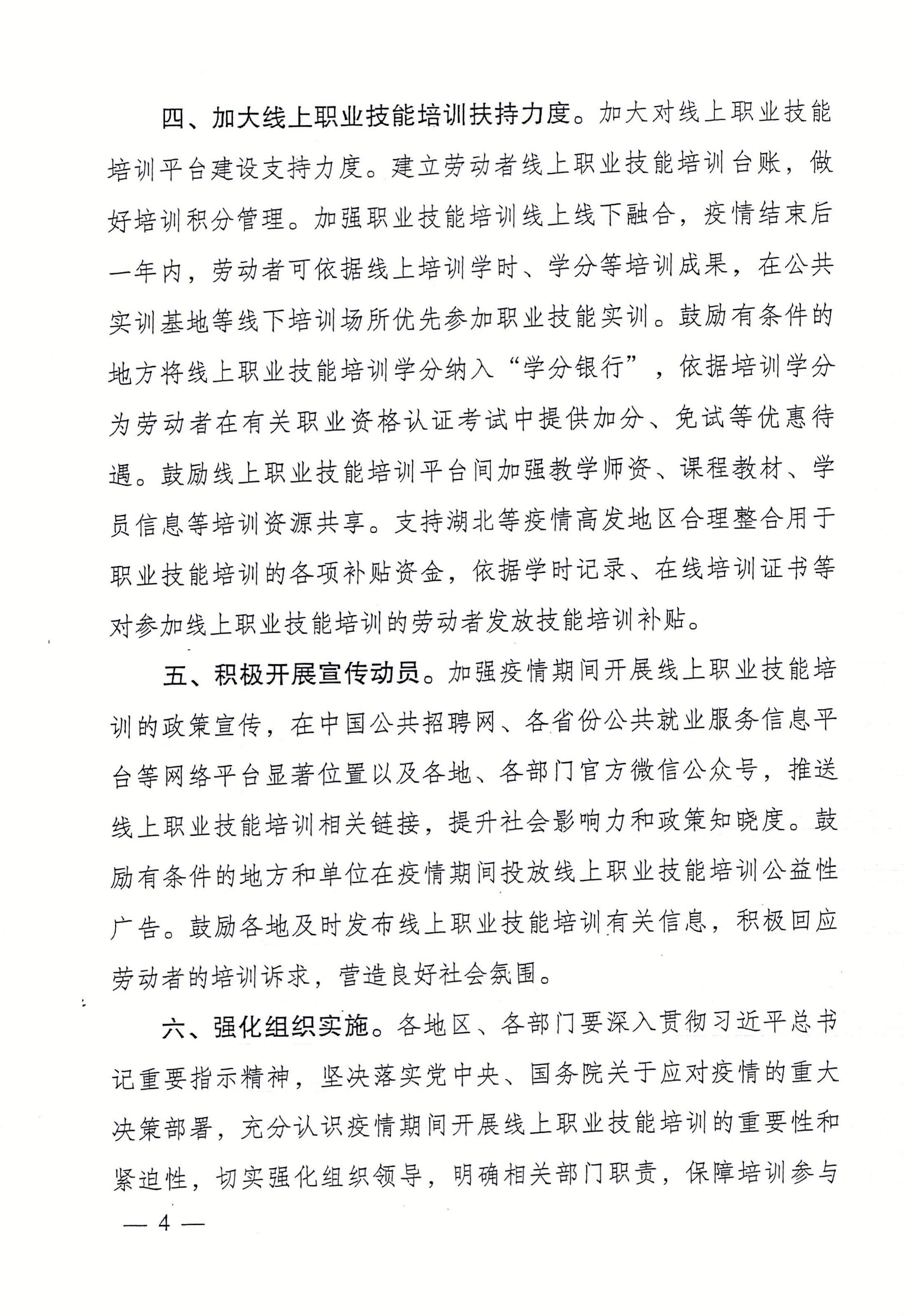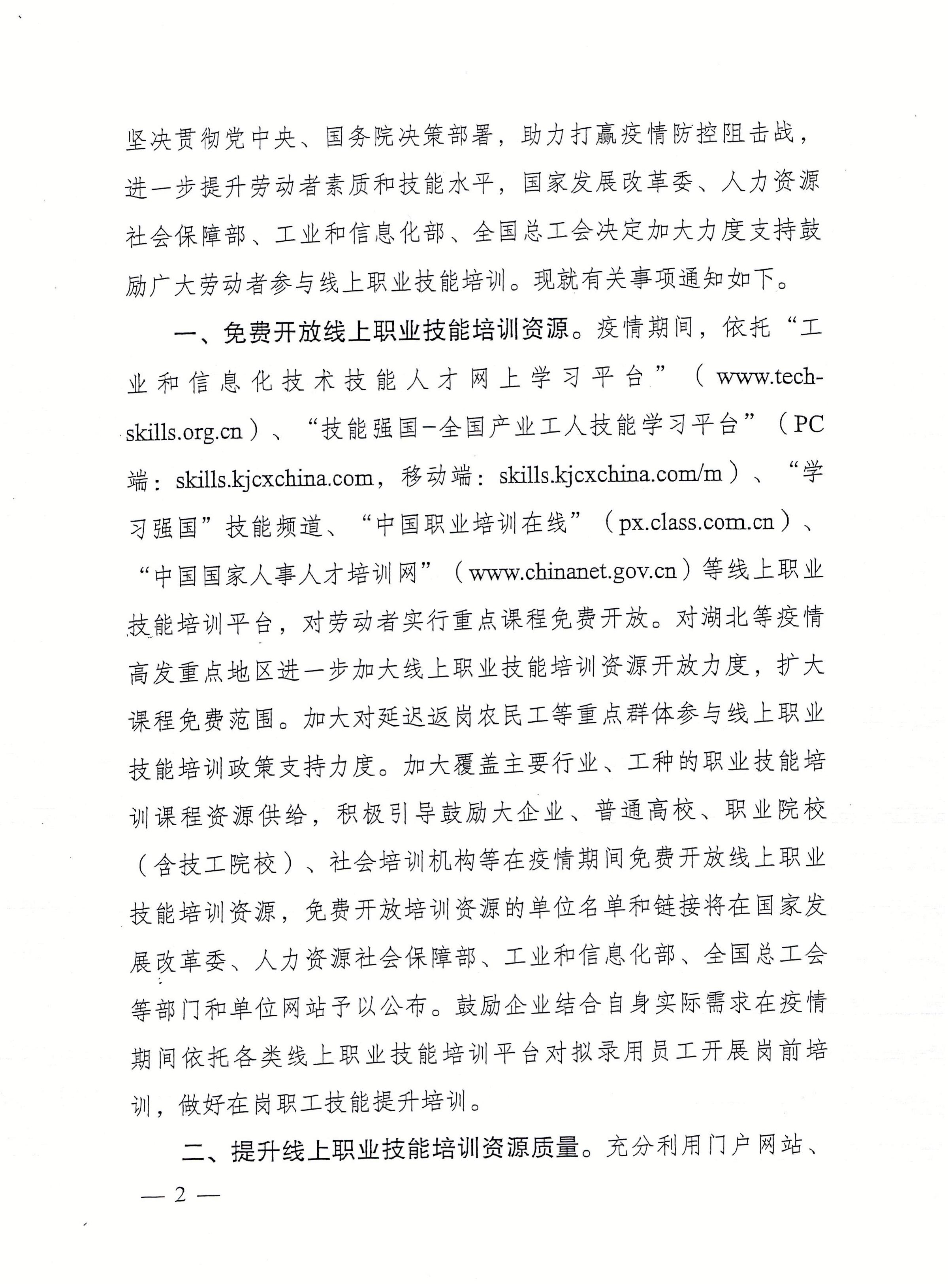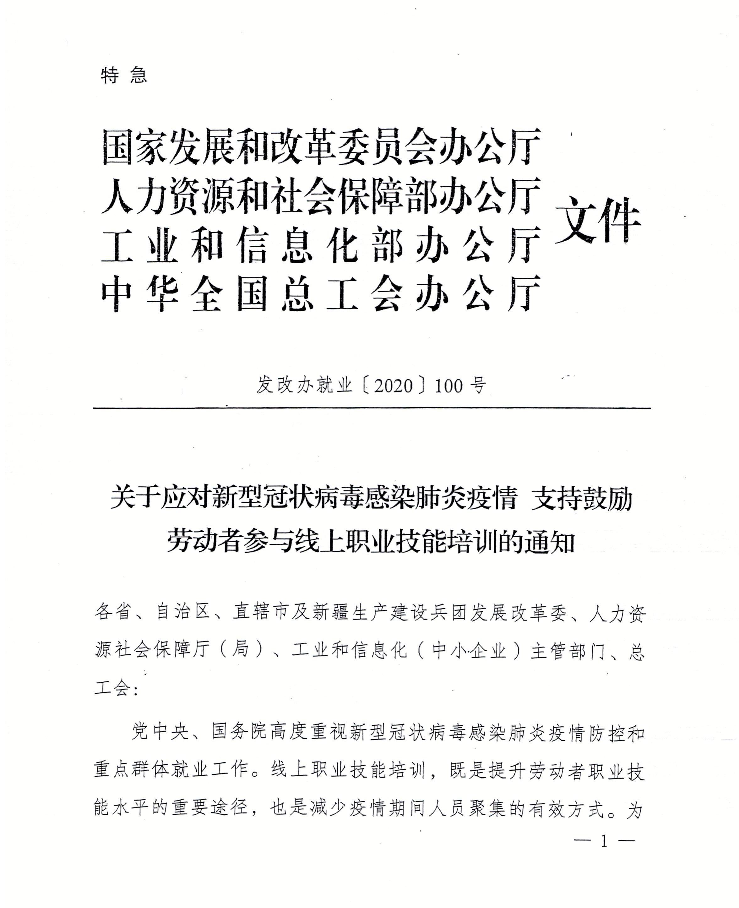 关于应对新型冠状病毒感染肺炎疫情支持鼓励劳动者参与线上职业技能培训的通知