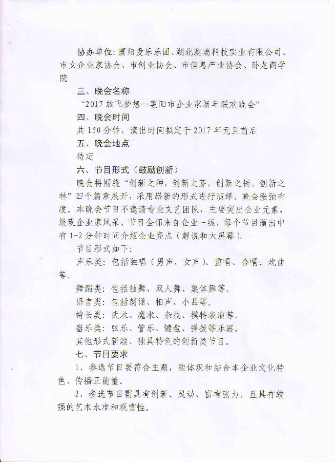 关于举办“2017放飞梦想—襄阳市企业家 新年联欢晚会”的通知