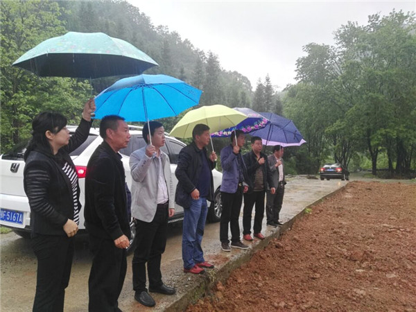 当天上午,明县长一行冒雨首先来到该村易地搬迁集中安置居民点,了解居民点建设和贫困户生活情况,之后又来到蔬菜大棚和巨菌草种植示范基地,察看了基地建设筹备情况。最后在村委会,明县长一行与村支两委进行座谈,听取了村支书对全村精准扶贫工作汇报。