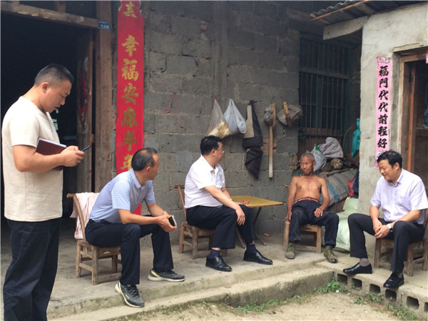 6月29日,市科技局局长黄斌、副局长张家琦一行,深入到保康县后坪镇洪家院村,就该村精准扶贫工作进行调研。 洪家院村是市科技局挂点扶贫村。当天下午,黄斌一行首先来到洪家院村村委会,听取村主要干部对全村脱贫工作做法和发展思路汇报,详细了解了洪家院村当前面临的吃水、行路、用电、村委会阵地建设、村集体经济发展、易地扶贫搬迁集中安置户原有住房拆除以及吃菜难等问题,并就如何解决好这些问题进行了研究讨论。 随后,黄斌局长来到结对帮扶户李光华家中,了解其生产生活实际困难,并送去了慰问金,鼓励其坚定信心,努力战胜当前面临的困难。